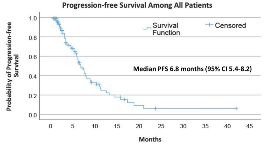 本研究的rwPFS(6.8个月)结果低于既往研究,可能是由于纳入更多既往多线治疗的患者。这项RW研究表明,T-DXd可用于经多线治疗的HER2低表达人群。