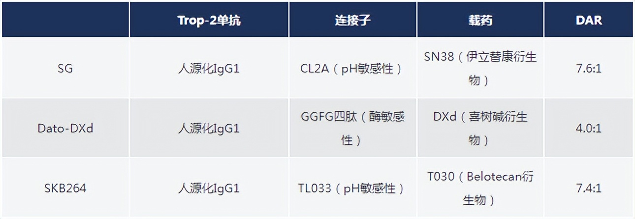 表1.TNBC领域靶向Trop-2的ADC结构简介