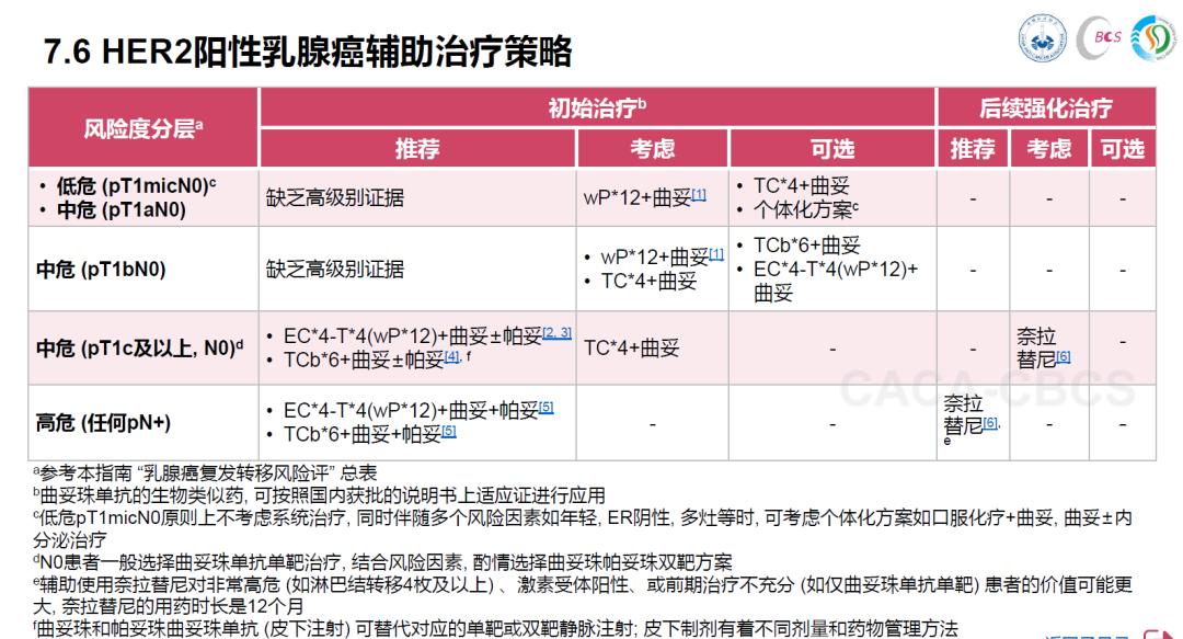 除此次更新内容外,在小红书中,奈拉替尼还被推荐用于新辅助治疗non-pCR(MP1-3或ypN+、MP4且ypN0)的HER2阳性乳腺癌患者,在曲妥珠单抗和帕妥珠单抗双靶治疗后或T-DM1治疗后,序贯奈拉替尼进行强化治疗。
