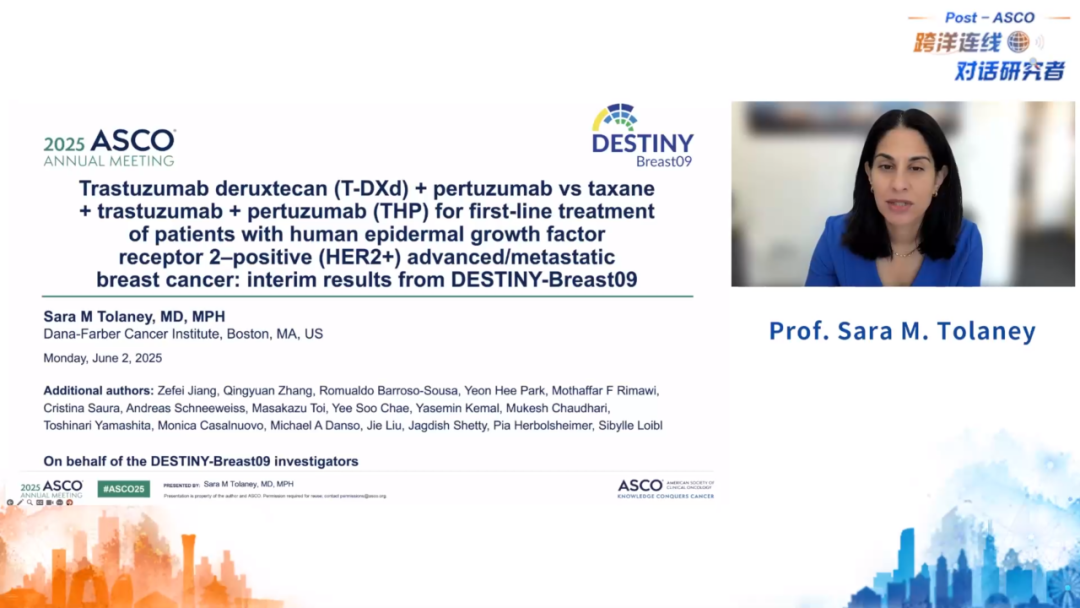 2025年6月4日,即ASCO落幕的第一天,江泽飞教授携手中国专家团,与DB-09研究全球PI、ASCO大会讲者、丹娜·法伯癌症研究所(Dana-Farber Cancer Institute)Sara M.Tolaney教授展开深度对话,研讨抗HER2 ADC德曲妥珠单抗(T-DXd)树立的一线抗HER2治疗新策略。
