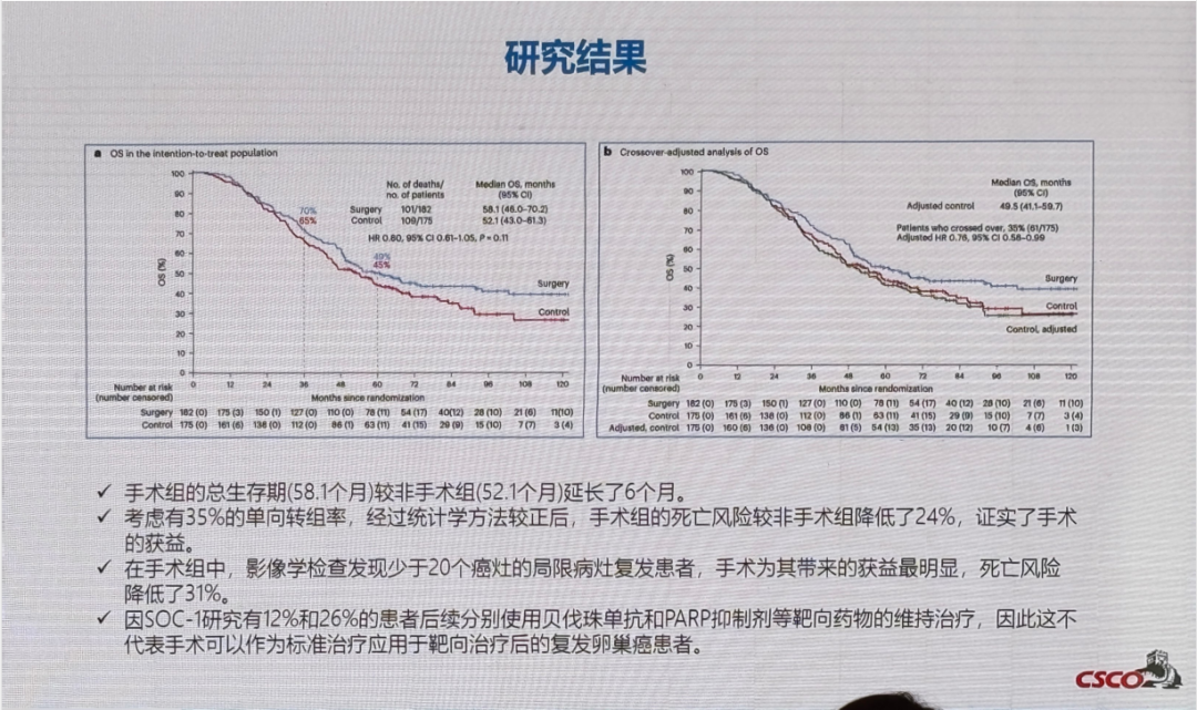 2.Rong,Jiang,Yanling,Feng,Yulian,Chen et al.Surgery versus no surgery in platinum-sensitive relapsed ovarian cancer:final overall survival analysis of the SOC-1 randomized phase 3 trial.[J].Nat Med,2024,30:0.