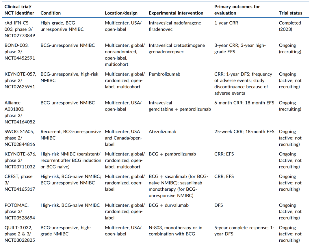 NMIBC治疗最大的痛点是卡介苗(BCG)无反应人群。国际共识定义“BCG无反应”为完成足量BCG后12个月内持续/复发原位癌,或6个月内复发高级别乳头状瘤。约三分之一患者陷入此困境,传统方案唯有膀胱切除。
