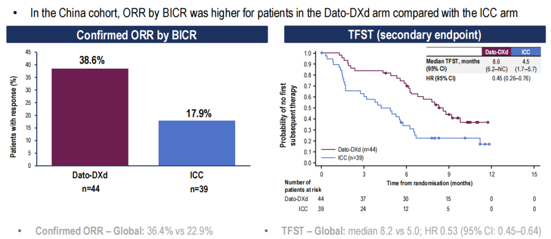 △TROPIN-Breast01研究中国队列BICR评估的ORR和TFST