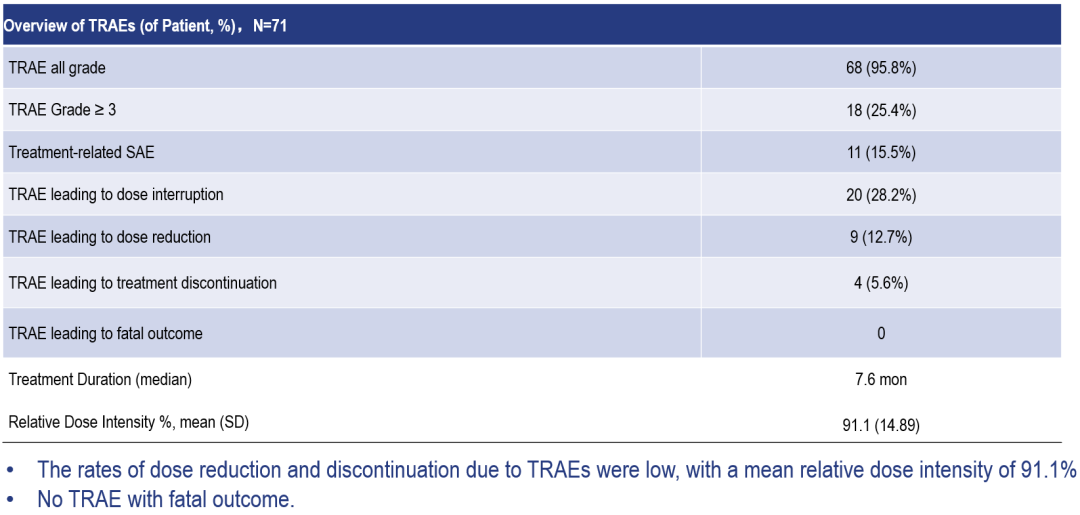 本研究的总体安全性与既往伏美替尼临床研究的结果一致[6]。未发现新的或意外的安全性信号。最常见的治疗相关不良事件(TRAE)为胃肠道不良事件,可在治疗中断、剂量减少或支持治疗后缓解。在既往部分三代EGFR TKI发生率较高的腹泻、贫血、皮疹等不良反应方面,伏美替尼组的发生率较低,分级为1-2级,是可控的[6]。伏美替尼为240 mg剂量,但因TRAE而减少剂量和停药的比例仍非常低,平均相对剂量强度为91.1%[6]。总体而言,伏美替尼240 mg组表现出良好的耐受性。