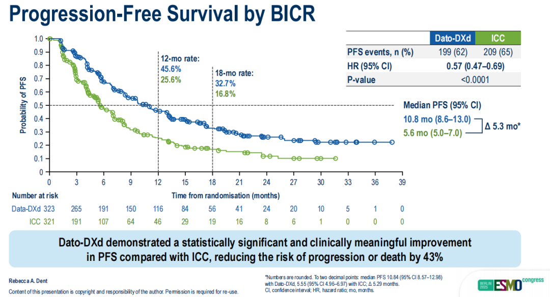 图1.TROPION-Breast02研究由BICR评估的PFS数据