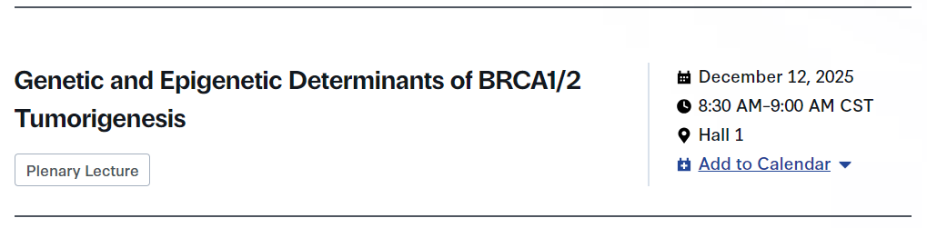 一场大会特邀讲座:BRCA1/2肿瘤发生的遗传和表观遗传决定因素
