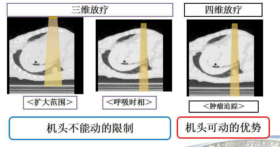 5、动度追踪是必要补充:三维放疗有机头不能动的限制;四维放疗有机头可动的优势。