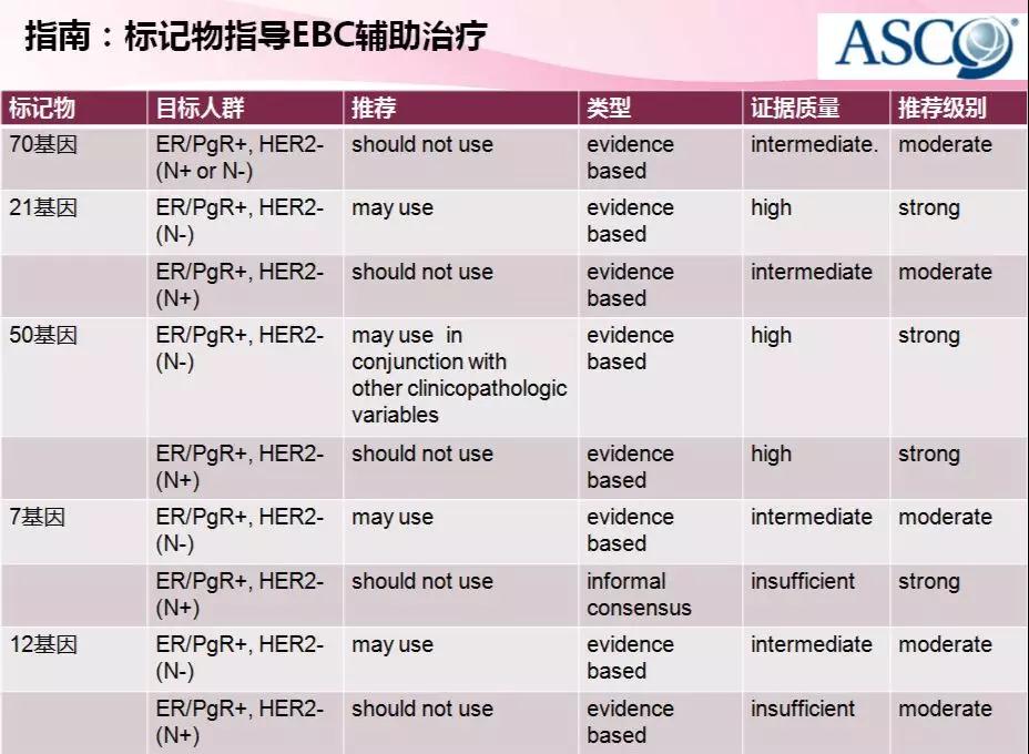 而对于一些很早期的病人,临床病理特征并不显著时则难以根据这些指标来进行有效的风险评估? 21基因检测,50基因检测,PAM50以及Breast cancer Index等基因工具的应用,可以对患者近期/远期复发风险进行一定程度上的量化评估。由于各基因检测阳性报告的cut-off值存在一定的差异,所以临床解读时也要考虑到检测模块选择、实验室条件和质量控制水平等,根据具体的cut-off值进行判定。