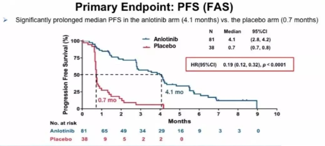 抗血管生成药物安罗替尼不仅应用于NSCLC三线治疗可显著延长生存,在SCLC中也看到了疗效。