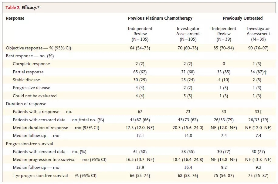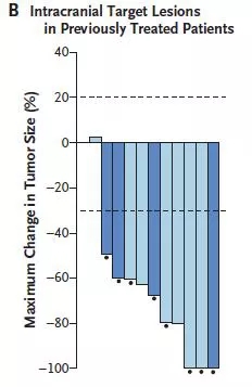 本研究主要终点为独立评审委员会评估的客观缓解率(ORR),次要研究终点包括颅内ORR、无进展生存(PFS)、反应持续时间以及安全性。所有客观反应的评估须在4周后进行确认。第一年每8周进行一次疗效评估,随后每12周进行一次疗效评估。