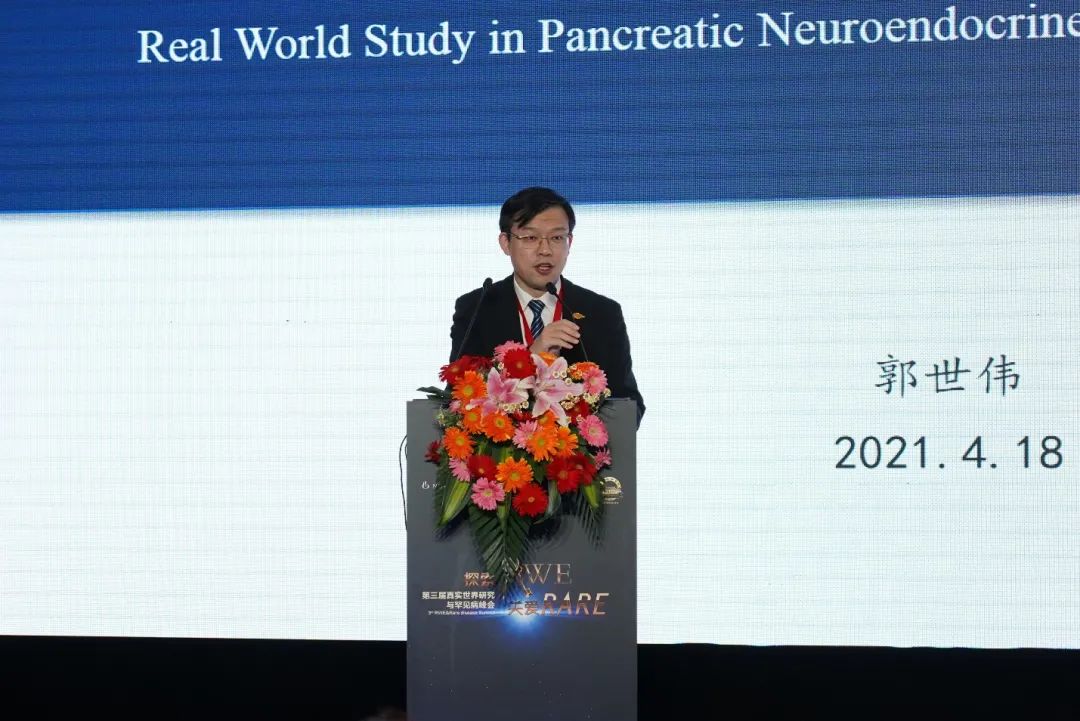 接着,海军军医大学长海医院郭世伟教授,在大会上分享了在罕见的胰腺神经内分泌肿瘤的研究过程中,通过回顾大量研究确定了研究人群、随访时间、患者评估方法,以及干预措施,并首先进行了单中心小样本的研究以确立可行性,最终开展多中心的真实世界研究,并通过纠正偏倚进一步获得可靠结论。郭世伟教授的研究清晰示范了罕见病如何在真实世界里整合小样本数据进行可靠研究。