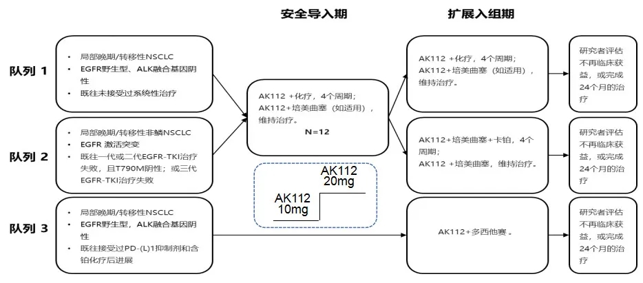 研究主要终点是根据RECIST v1.1评估的客观缓解率(ORR)。AK112-201设计了10mg/kg和20mg/kg两个剂量组,设置安全导入期。