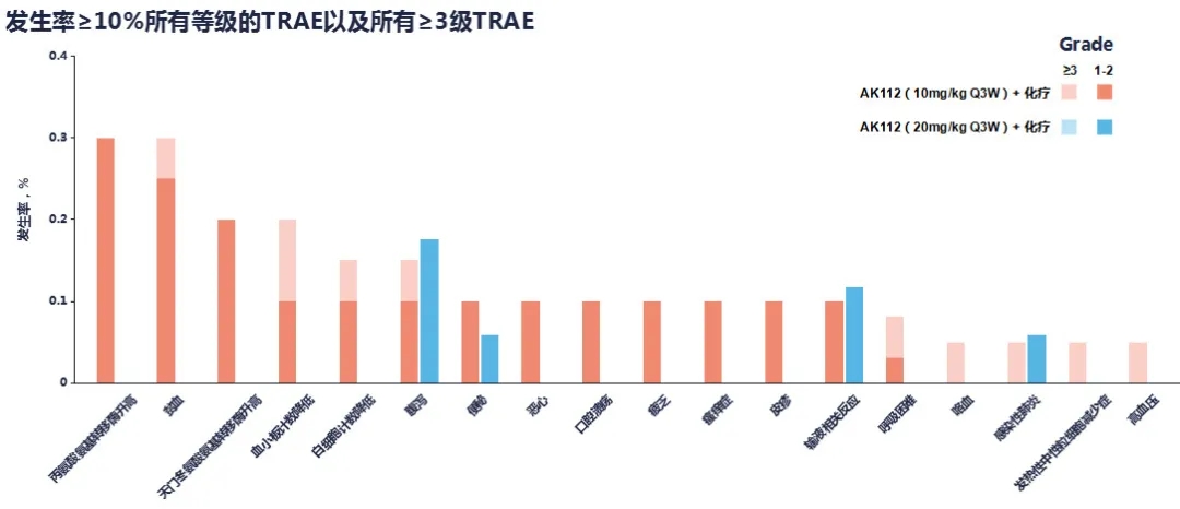 AK112-201研究的初步数据显示,AK112联合化疗的安全性可耐受,一线治疗NSCLC的疾病控制率达100%,研究正在开展中。