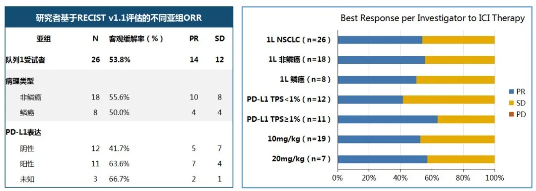 10例PD-L1表达阳性受试者(其中2例TPS≥50%)中,ORR为70%(7/10);