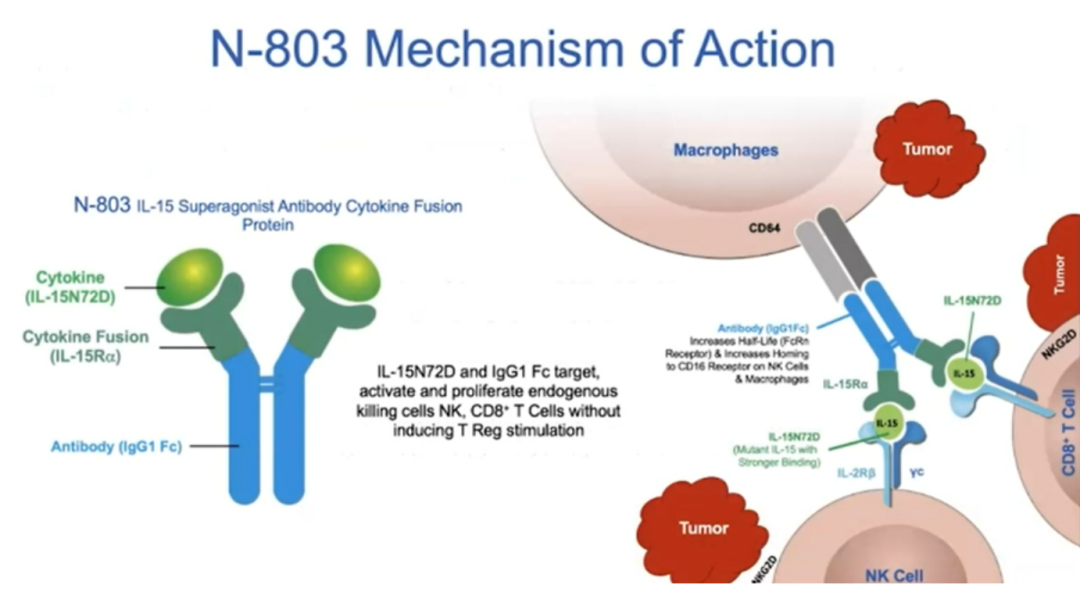 N-803是一种IL-15RαFc超激动剂复合物,可促进自然杀伤(NK)细胞和CD8 + T细胞(而非调节性T细胞)的增殖和活化。2019年,美国FDA授予N-803突破性疗法认定,用于治疗BCG反应不佳的原位膀胱癌患者。