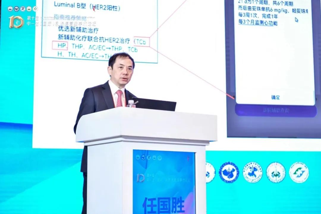 解放军总医院肿瘤医学部江泽飞教授带来了《抗击HER2 一路同行——乳腺癌精准治疗20年探索历程》的讲课,回顾了HER2阳性乳腺癌患者的治疗历程,从引进并学习NCCN指南,推广规范化治疗,到参与St.Gallen共识,随后开展临床研究及真实世界研究,探索循环肿瘤细胞应用,推动智能决策的研发,逐步形成了具有中国特色的临床指南。