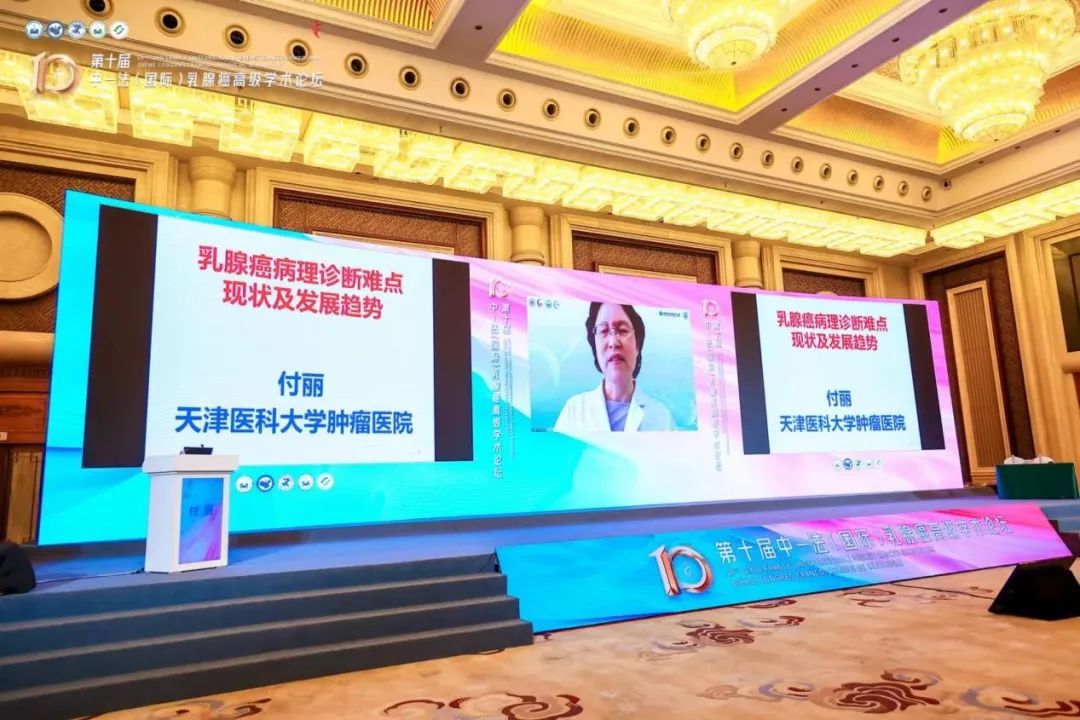 在23日的讲课中,病理基础与伴随疾病环节,天津医科大学肿瘤医院付丽教授带来了《乳腺病理诊断的现状及发展趋势》讲课,介绍了乳腺癌病理的治疗现状及发展趋势,并就病理诊断中体内无创病理诊断的相关技术进行了报告。