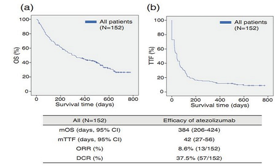 全组患者ORR为8.5%,研究未达到其预设的研究终点,中位PFS为2.8个月,12个月PFS率为4.8%,中位OS为11.0个月,12个月OS率为46.4%。