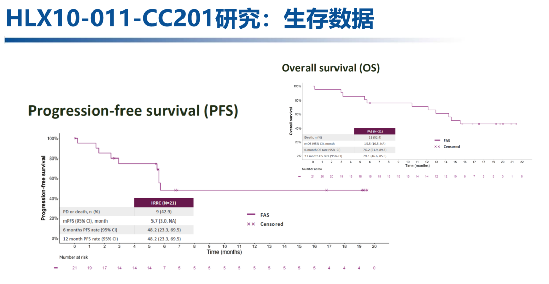 次要终点方面:DCR为76.2%;中位DoR尚未达到,12个月的DoR率达70.0%;中位PFS 5.7个月,6个月和12个月PFS率均为48.2%;中位OS为15.5个月,6个月和12个月OS率分别为76.2%和71.1%。斯鲁利单抗是目前第一个基于中国人群获得免疫联合化疗OS数据的PD-1抑制剂,进一步验证了PD-1抑制剂联合化疗在宫颈癌二线治疗中的疗效,为中国乃至全球宫颈癌患者增加了新的免疫治疗方案。