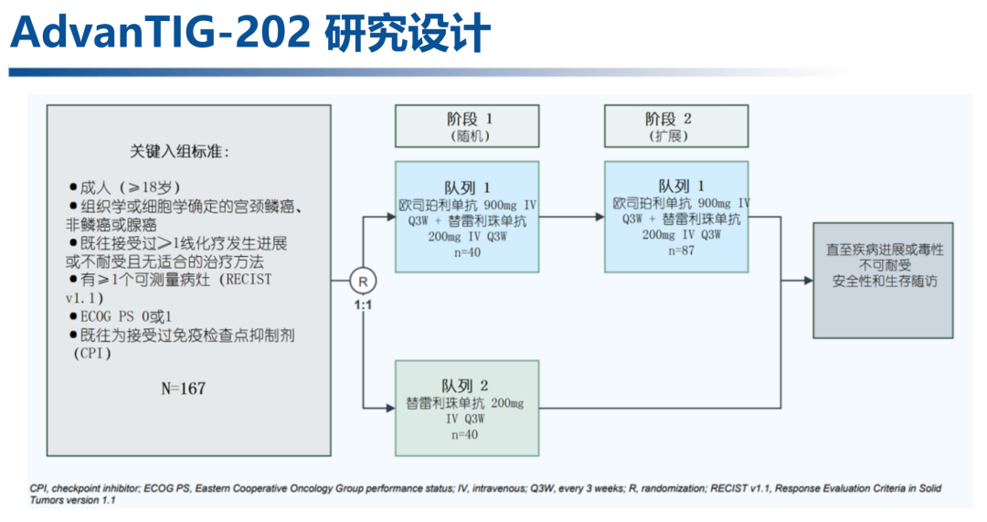 [21]Lingying Wu,et al.AdvanTIG-202:A Phase 2 study investigating anti-TIGIT monoclonal antibody ociperlimab plus anti-PD-1 monoclonal antibody tislelizumab in patients with previously treated recurrent or metastatic cervical cancer.SGO 2022.