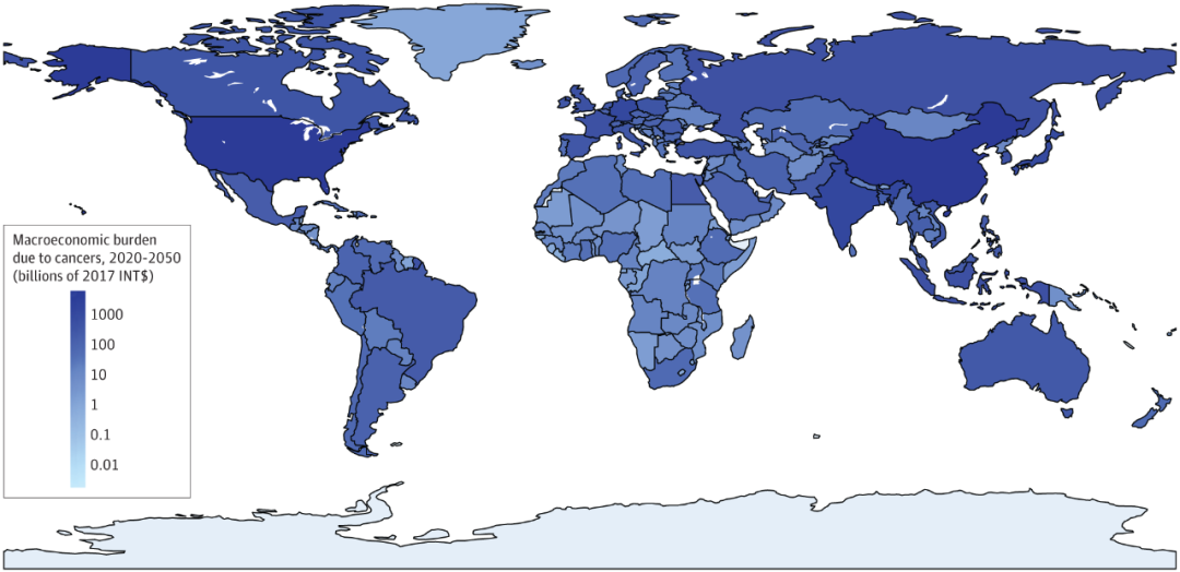 2020年-2050年癌症造成的宏观经济负担
