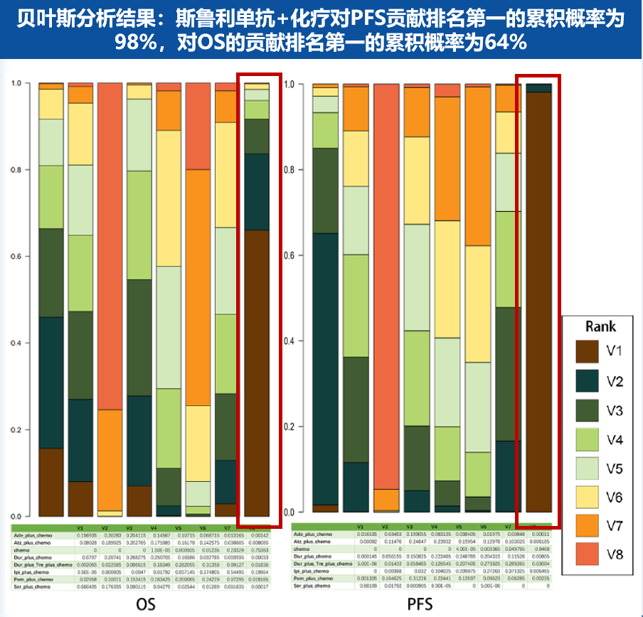 中南大学湘雅二医院吴芳教授研究团队对IMpower133、CASPIAN、CAPSTONE-1、KeyNote604、ASTRUM-005、CA184-156研究的3662例患者进行的网状Meta分析5结果显示:斯鲁利单抗联合化疗最有可能呈现最佳生存获益。