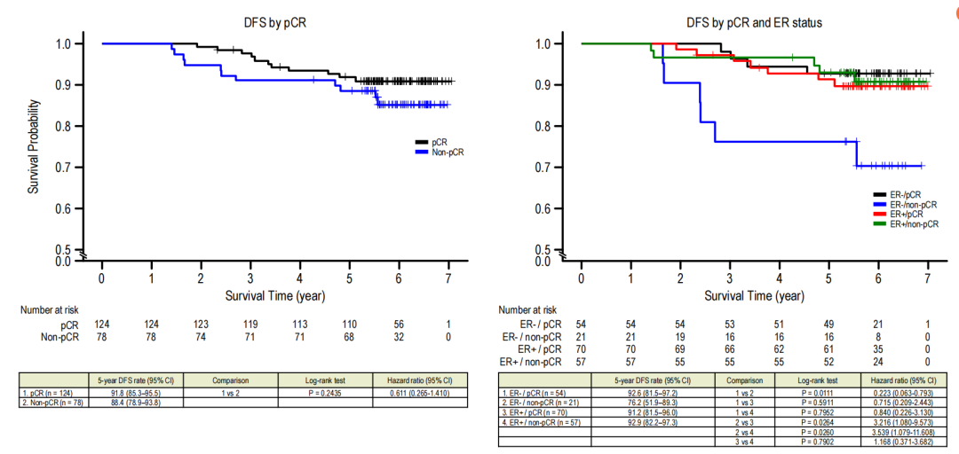 图3.ER状态下达到pCR/未达pCR患者的DFS