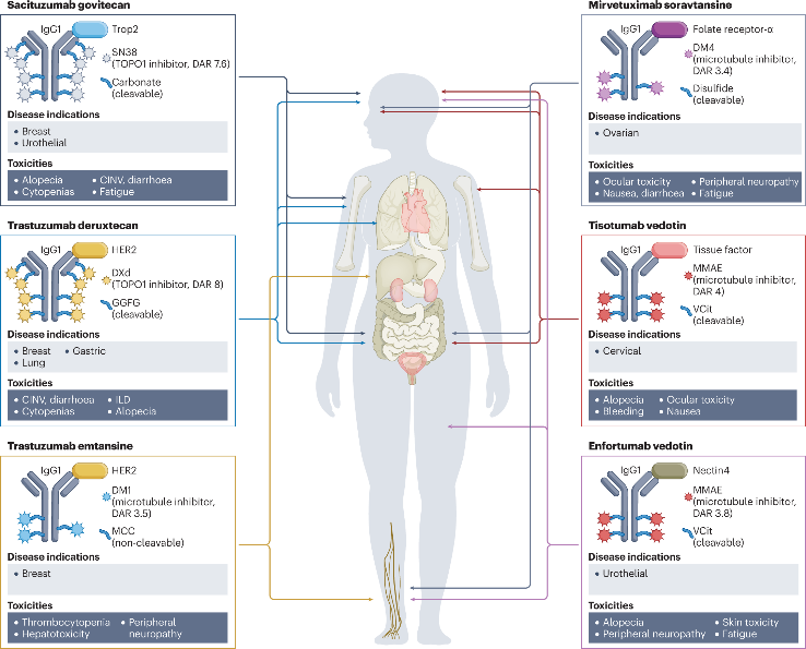 参考文献:Tarantino P,Ricciuti B,Pradhan SM,Tolaney SM.Optimizing the safety of antibody-drug conjugates for patients with solid tumours.Nat Rev Clin Oncol.2023;20(8):558-576.doi:10.1038/s41571-023-00783-w