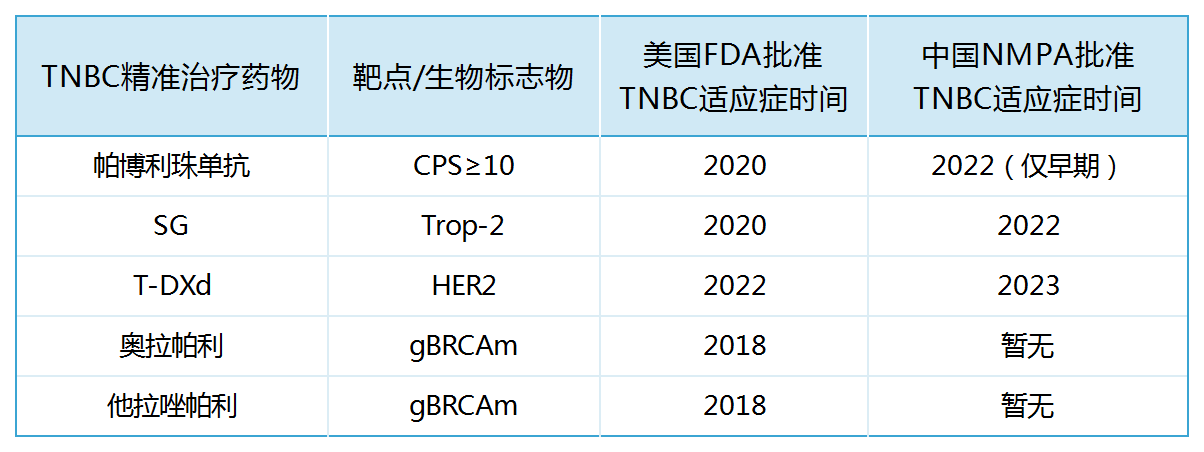 图1.近年批准的晚期TNBC靶向、免疫、ADC药物